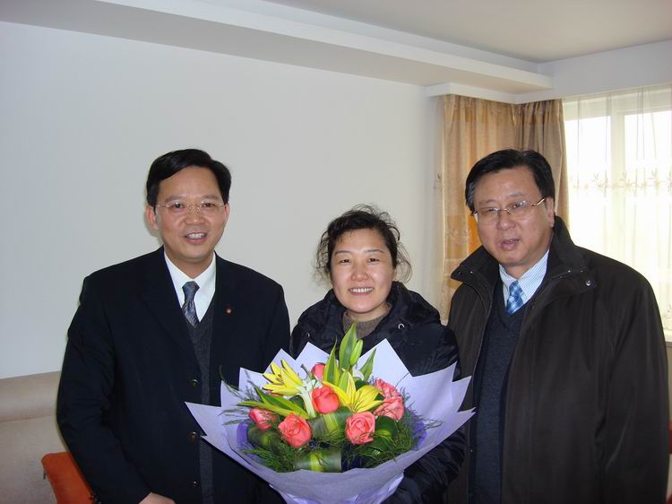 1月22日,学校副校长郭清、学院党委书记章伟群在学院工会主席刘苏杭的陪同下看望慰问了在职生病的教职工彭华光。 郭清副校长亲手为彭华光老师送上了鲜花,祝她早日康复重返教学医疗岗位。章伟群书记送去了全院党政班子新春的诚挚问候和美好祝愿,恭祝她身体健康,幸福快乐。彭华光老师对校领导专程看望她表示衷心感谢,表示将一如既往地关注、关心和支持学校的发展。