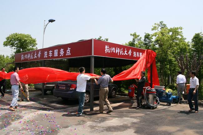 5月11日,由校工会和后勤发展总公司联合推出的洗车服务点正式向教职工开放,这也是在学习实践科学发展观活动中,两部门为我校教职工办的实事之一。校工会负责人、后勤发展总公司负责人、分工会主席及教职工代表共30余人参加了“杭师大教职工洗车点”开张仪式。