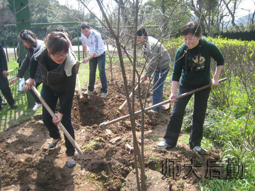 植树节当天,后期集团组织员工参加学校第七届“植树节”,与校领导、教师和学生代表挥锹培土,共同种下樱花、挂花等几十颗小树苗。活动现场,校领导还向10名爱绿、护绿、养绿的绿化卫士颁发聘书。集团还联合校学生生活自律委员会开展献爱心义卖活动,将园艺中心培育的120多盆小植物作为义卖物品,活动所筹得的款项捐助给在校贫困学生;在生活区摆放宣传展板,向师生介绍生态校园建设的意义;此外,后勤第三党支部还组织党员、团员和群众开展人人动手植树活动,共同种下了樱花、桂花、枫香等四十多棵树苗。