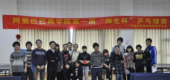 由阿里巴巴商学院分工会与院团委、学生会组织的阿里巴巴商学院学生乒乓精英与学院老师乒乓球决赛于三月二十四日中午在校体育中心举行。比赛进行得十分激烈,最终学生队获得团体赛冠军,男、女组个人冠军由教师队得张佐和洪流老师获得。