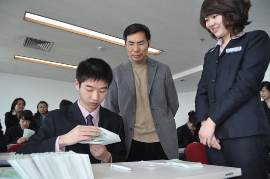 杭州市卫生局近期在市卫生系统开展卫生医疗服务收费窗口技能大比武活动,我院领导高度重视,吴正虎院长亲自主持会议部署医院比武活动各项准备工作, 成立了技能大比武领导小组,负责本次大比武的具体组织实施工作,并亲自参加财务科组织的比武活动,对比武过程中工作人员如何做好规范礼仪、动作技巧等提出了要求,对财务科工作人员提出了殷切的希望。要求全体财务人员要以此次比武活动为契机,增强意识、主动学习、强化练兵、重在提高,更好地为广大患者提供快捷、便利、人性化的服务,提升我院服务窗口形象。