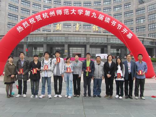 本届读书节以“阅读伴成长,书香溢校园”为主题,开展一系列活动。开幕式上,图书馆向2011年度图书借阅量排名前10位的“阅读之星”颁发了荣誉证书,许多读者纷纷在活动展板上签名并书写感言,表达了自己对本届“读书节”活动的良好祝愿。