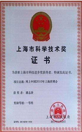 近日,国服院潘志庚教授参与完成的项目《网上中国2010上海世博会》荣获上海市政府颁布的科技进步一等奖。该项目受上海市科委项目支持,是“网上世博会关键技术”的子项目, 其研究成果成功地用到了网上世博会中。