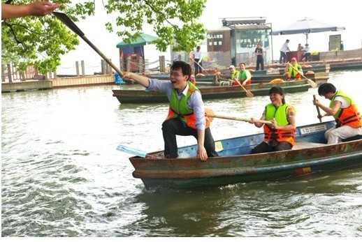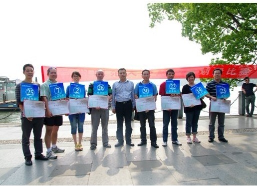 5月11日下午13:30,杭州师范大学第十一届体育节教职工活动项目-----第四届教职工西湖划船比赛在湖滨六公园游船码头举行,现场到处洋溢着兴奋和激情,参赛队员个磨拳擦掌,心情激动