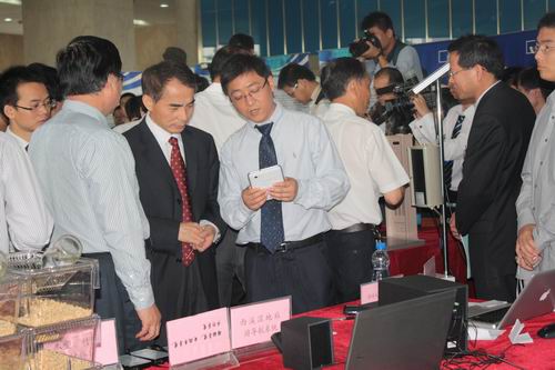 本次科研成果展中,我校共展出了八个项目,其中国服院的“针织圆机电脑控制系统”、“WLAN信号测试移动终端”、 “3D无线规划软件”等三项科研成果参加了此次推介会。值得一提的是,推介会前,在省政府秘书长张鸿铭,教育厅领导刘希平、汪晓村等的陪同下,夏宝龙省长来参观了我校展出的科研成果。