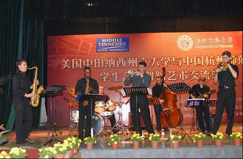 中田纳西州立大学位于距美国“乡村音乐之都”那什威尔的Murfreesboro,爵士专业在这座音乐名城中有着举足轻重的地位。此次来访,MTSU学生爵士乐团是作为杭州师范大学在中田纳西大学设立的孔子学院的学生来到杭州进行交流演出。