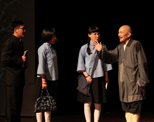 在我校下沙艺术中心为1200多名师生演出话剧《弘一大师—