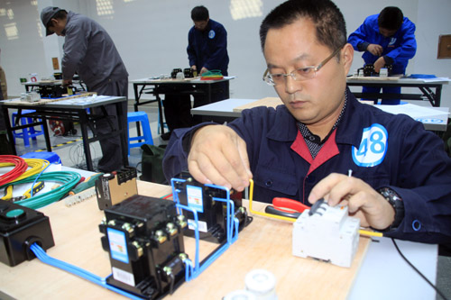 据了解,本次比赛分为保洁技能和电工技能两个比赛项目,当天两个项目组的比赛在不同场地同时进行。按照比赛规则,保洁技能比武二人一组,在规定二十分钟内将一间教室清理最干净者为胜。随着裁判长一声哨响,参赛选手们合理分工,迅速地开展保洁工作,从擦拭黑板、课桌椅到打扫教室地面、清理垃圾,个个技术熟练,动作敏捷,争分夺秒,各显所能。电工技能比武分为电工技能理论知识考试和安装技能竞赛,考察员工的综合素质。选手们娴熟地拉接电线,组装配电板。经过激烈的角逐,物业服务中心员工获得了可喜的成绩,维修员工方立银、林祥迎获得电工技能比赛一等奖,保洁员工余妙云、郑来凤获得保洁技能比赛二等奖。