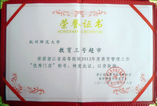 喜讯:下沙校区教育三号超市荣获浙江省高等院校2012年度“优秀门店”称号