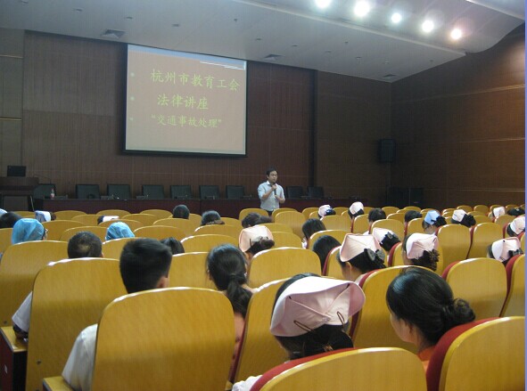 10月15日下午,附属医院邀请了杭州市总工会法律宣讲团成员、杭州师范大学法学院实务导师林景行律师在学术报告厅举办“交通事故处理”普法讲座,全院教职工共计100余人聆听了讲座。