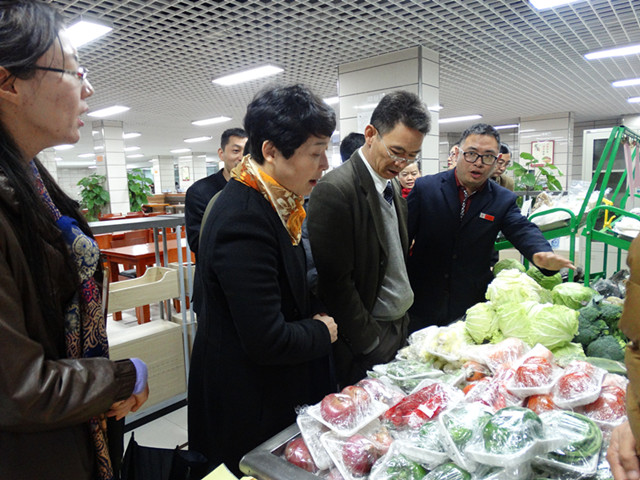 代表们先后参观了仓前校区食堂的消毒中心、恕园一楼餐厅厨房、米饭制作中心、集中加工中心以及净菜服务点,现场观摩了菜肴的生产加工过程、食品检测流程,了解了新引进的设施设备和管理模式,感受了后厨工作的环境,听取了后勤主动推出净菜售卖等服务新项目的情况介绍。