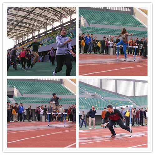为了活跃校园生活,增进教职工间的团队合作精神, 2014年11月26日下午,学校在仓前运动场召开了首届教职工趣味运动会。医学院的领导和工会积极响应,组织医学院教职工参加了飞镖投准、跳大绳、西水东调、抱球接力、双龙戏珠五项集体项目和老年组个人50米持拍跑、立定跳远、沙包掷准等趣味运动。我们以‘玩’的心态来参加比赛,在整个比赛中气氛相对比较轻松,加油声、欢笑声不断……我们虽然不是声名显赫的运动明星,但我们有坚强的自信,团结是我们的精神。许多项目如:跳大绳、西水东调、抱球接力等特别能体现团队间的合作无间,只要有一位队员出了差错,会导致所使用的时间会增加很多。最后,医学院教职工上下一心,团结合作,取得了良好的成绩,其中:抱球接力获得团体第三名;双龙戏珠获得第五名;西水东调项目获得第六名 。