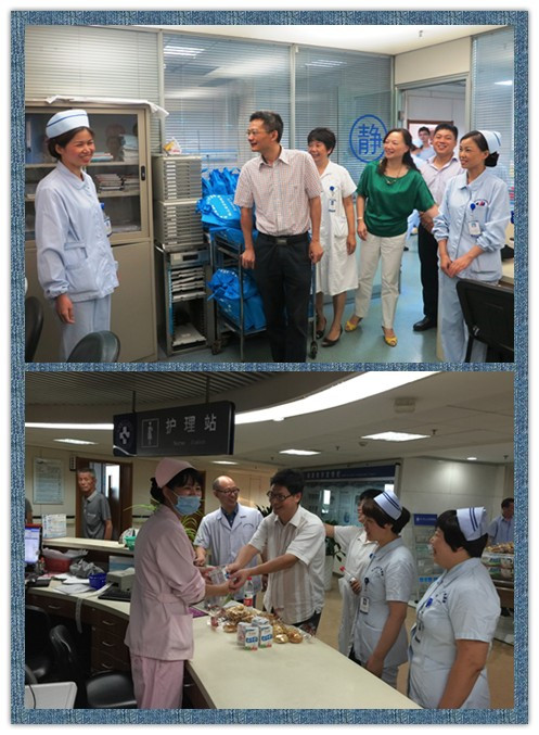 炎炎夏日,持续的高温牵动着各级领导的心。为进一步推进夏季防暑降温工作落到实处,确保广大医务人员平安度夏,各级有关领导纷纷进行各种形式的高温慰问。如陶骏副院长带领工会和总务科长慰问了后勤的锅炉、高配等高温作业部门的人员;童裳超副书记带领工会、医务和护理部慰问了夜班一线的医务人员。上级领导的慰问,给高温下奋战在一线的医务工作者带来了丝丝“清凉”,也使他们深切感受到了上级领导的殷切关怀。