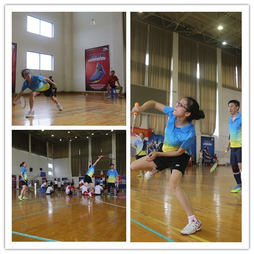 比赛一开始,只听到球拍发出“啪、啪”的响声,球从球网的这边消失,一瞬间就到了对面选手的拍前。平时看来不像很擅长运动的教工们没想到羽毛球打得如火如荼。球拍忽急忽缓、忽左忽右、忽高忽低;球不是正好压线,就是刚好过网,功力之深实在令人佩服。