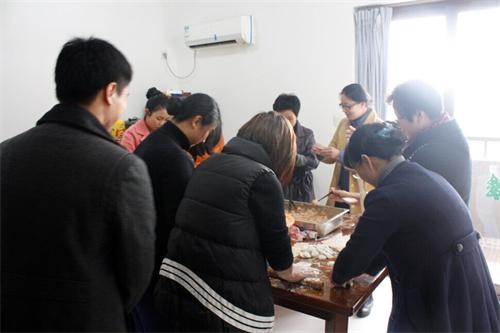 全院教职工们热情高涨,活动开始前老师们就已在各位工会委员的组织协调下着手购买食材、和面、拌馅,活动现场更是充满了热情洋溢、团结互助的气氛。大家互相切磋包饺技艺,有包饺子能手擀出劲道的皮,包出漂亮精致的饺子,有新手虚心学习,现学现卖。这边在包,那边已在准备开水下锅了。热腾腾的饺子一端出来,大家就迫不及待地品尝起来,肉的浓香混合着白菜的清香扑鼻而来,好吃!工会小家内其乐融融,一片欢声笑语。大家互相赞叹各自的手艺,在品尝美食中分享着快乐和劳动的喜悦,令人意犹未尽。