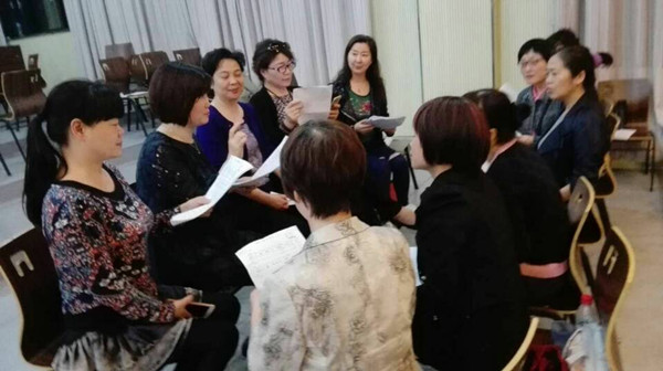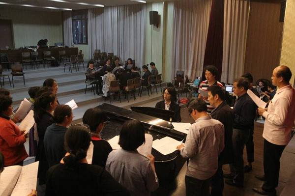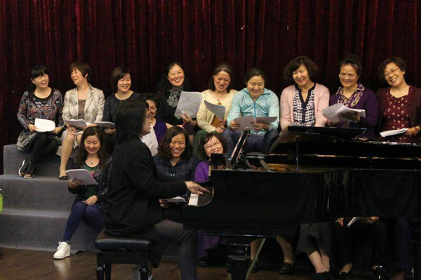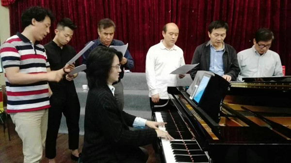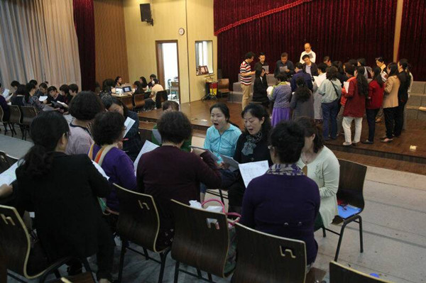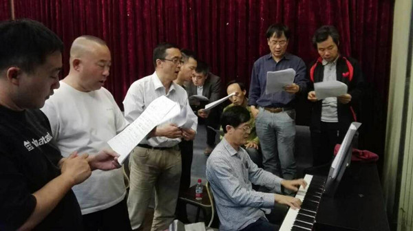 待到周老师集中排练时,就是调试老师们的音准及和声了。