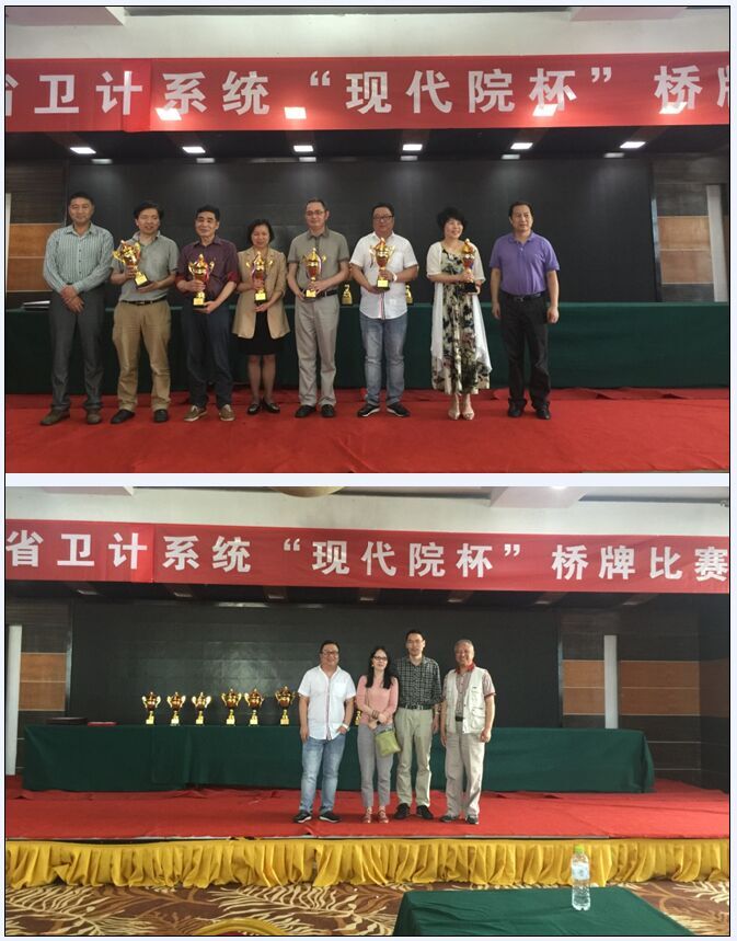 2016年6月3日,由浙江省卫生体育协会和浙江省卫计委工会主办的“现代院杯”桥牌比赛在美丽的钱江之畔——龙禧大酒店拉开帷幕,来自浙江省各地市卫生体协、医学高等院校及附属医院等34支代表队参加了比赛。本次比赛为期1天半,分别有公开团体赛、女子团体赛和公开双人赛三个竞赛项目。