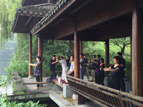 西湖的景色迷人,拳友们更醉心于这富有中国传统特色元素的文化形态,传承中华文化,领略儒、道哲学中的太极、阴阳辩证理念,针对意、气、形、神的锻炼,颐养性情、强身健体,促进个体身心健康以及人类群体的和谐共处,积极为杭师大建设而奉献,为社会进步而贡献。