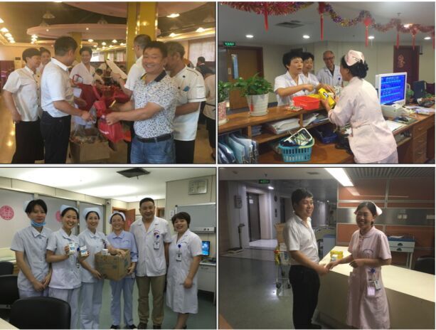 为积极做好防暑降温工作,对高温下坚守岗位、辛勤工作的医务人员致以诚挚感谢和亲切问候,为进一步推进夏季防暑降温工作落到实处,确保广大医务人员平安度夏,各部门领导纷纷进行各种形式的高温慰问。如7月25日,陶骏副院长带领工会、医务科和护理部慰问了夜班一线的医务人员;8月1日,陶骏副院长又携同总务科给医院的保安、露天垃圾清洁及运送工、急救中心、高压配电间、锅炉房、空调机房和膳食等高温作业部门带去了杭州市总工会和教育工会的关怀。慰问小组叮嘱大家在繁忙工作的同时,也要注意身体健康和安全,对他们冒着高温酷暑坚守岗位,为医疗事业作出贡献的精神表示敬意和感谢,并将有关避暑物品发放到每位高温作业教职工的手中,为他们送去了夏日里的一份清凉。