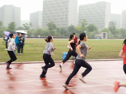 她们会早早地到达赛场做准备活动,她们会在比赛中用尽全力地去拼搏。看,在100米女子中年组的赛场上,外院的教工们正驰骋赛场,大步向前。加油吧,外国语学院的教工们!