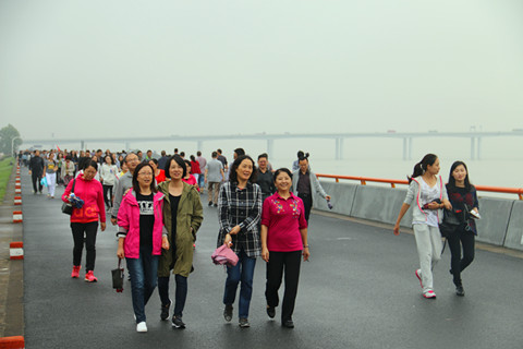 钱塘江畔边, 虽有秋风细雨,但仍然抵挡不住大家积极参与的热情,大家边走边欣赏沿途美丽的江景,畅谈彼此对工作与生活的美好感受。许多老师兴致盎然,纷纷举起手中的相机,摆出多种姿势,把美丽的心情和江畔美景定格下来。一路上的欢声笑语让老师们忘掉了所有工作上的烦恼。既欣赏着美丽的江景,感受着钱江学院日新月异发展变化,同时更享受着健步走运动带来的快乐。