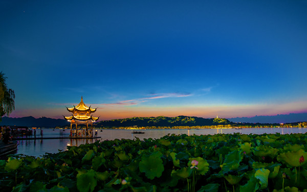 西湖集贤亭暮色--何光钊