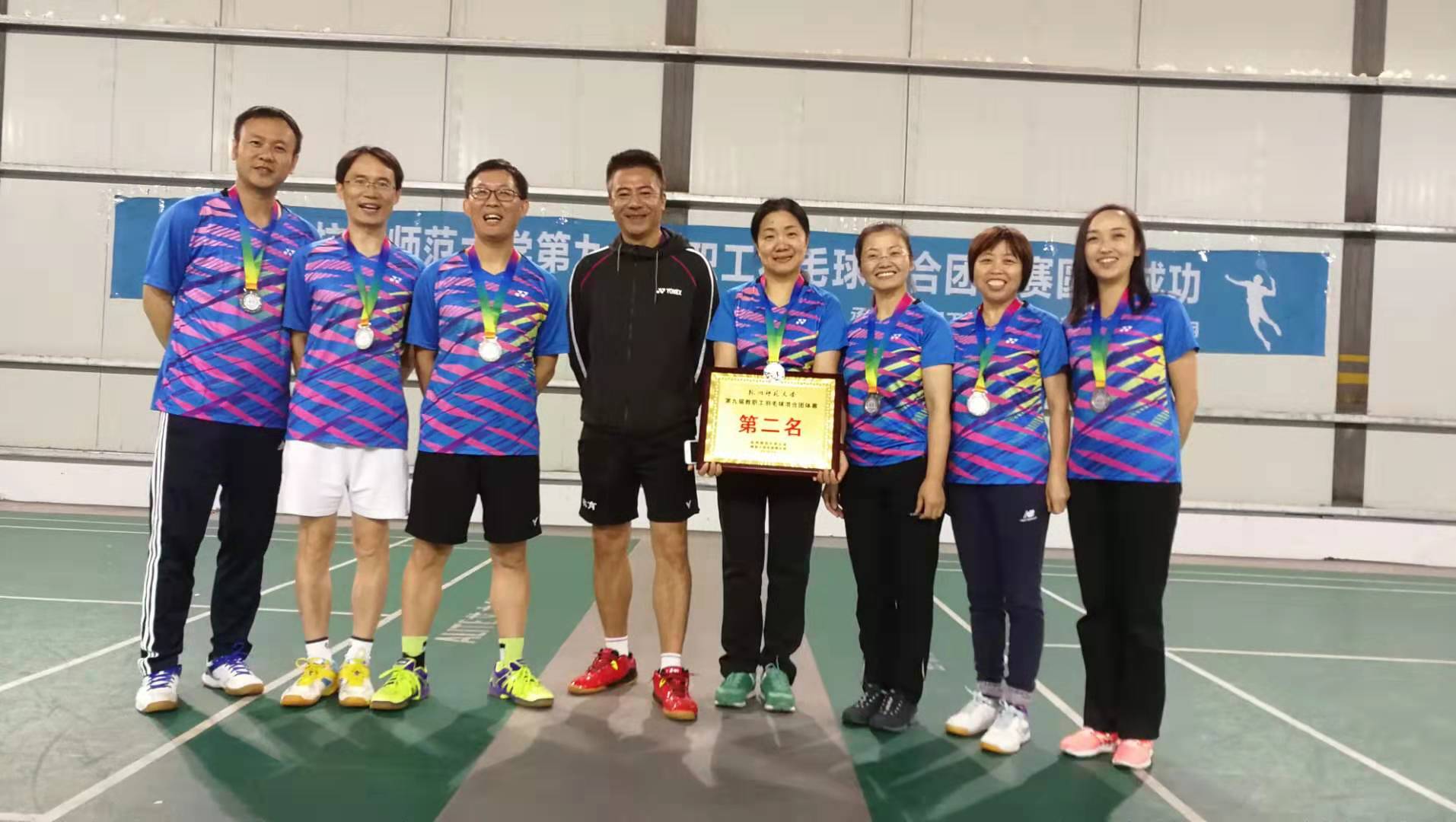 10月30日晚,杭州师范大学第九届教职工校羽毛球比赛在仓前校区室内体育馆举行,学院遴选了8名教职工代表参加本次比赛。八位老师团结协作,奋力拼搏,一路披荆斩棘,在决赛中憾负于强手如林的附属医院代表队,拿下本次比赛亚军。