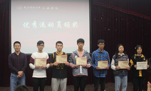 大会依次对优秀运动员、运动会优秀组织者、运动会先进宣传个人、团体项目运动员和体院小教练代表进行表彰。在校第41届运动会上,我院运动员成绩喜人,取得了女子团体总分第三名、男子团体第七名、男女团体第五名、教工团体第六名、教工组和学生组体育道德风尚奖等多项荣誉,创造了人文学院近年来的最好成绩,获得了历史性的突破。