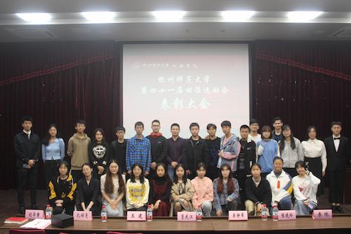 11月19日下午16点50分,我院在恕园23号楼弘毅厅举行第41届校运动会人文学院表彰大会。院党委副书记管庆江,院团委书记孔祥亮,学工办主任陈晓玲,辅导员刘华章、李悦,杭州师范大学田径协会荣誉主席王建,团委学生会主席团和全体部门负责人,校运动会对接体院教练以及第41届校运会个人、团体项目的获奖运动员出席大会。
