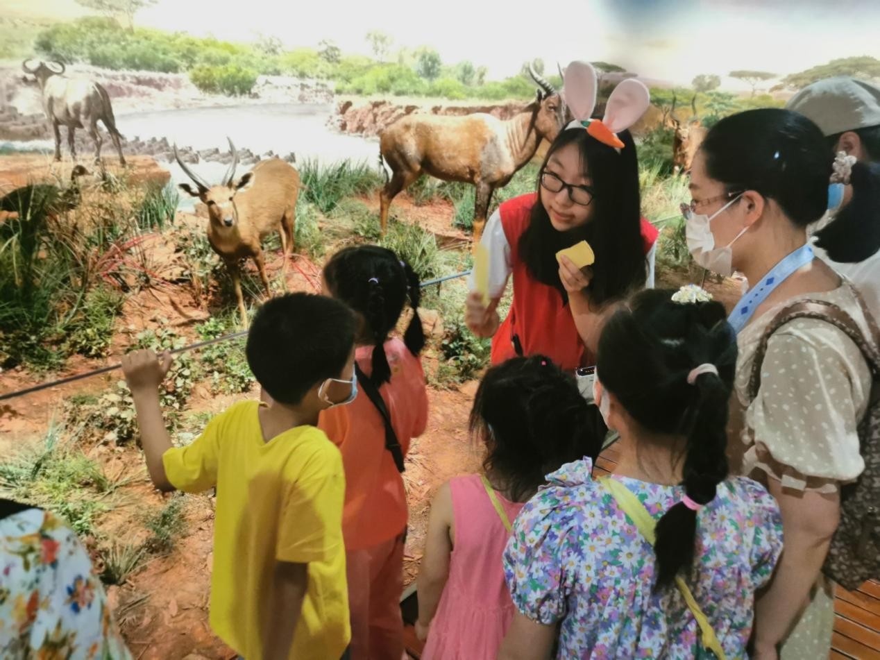 与此同时,“博物大冒险活动”(低龄段)也进行得如火如荼。这是“博物摘星阁”团队特地为杭师大教师子女准备的“六一惊喜”!无论是热带雨林神秘的猪笼草,还是神奇的气生根;非洲大草原长颈鹿一般高的白蚁巢,出生一小时就能奔跑的斑马宝宝;“庞然大物”的非洲象;北美森林可爱的美洲河狸、臭鼬、驯鹿、褐鳟;北美苔原的雪鸮、荒漠的九代犰狳和美洲獾,无不令小朋友们心驰神往。