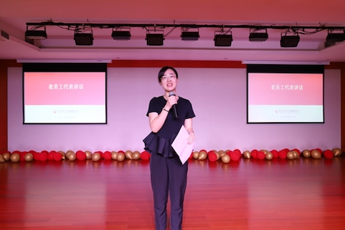 退休员工张明花、邵燕芳代表发言。她们表示,在后勤工作了二十多年,早已把后勤当成是第二个家,很感谢后勤提供稳定、温馨的工作环境。退休不褪色,无论在哪里,都会时刻关注后勤的发展,永远是后勤人。