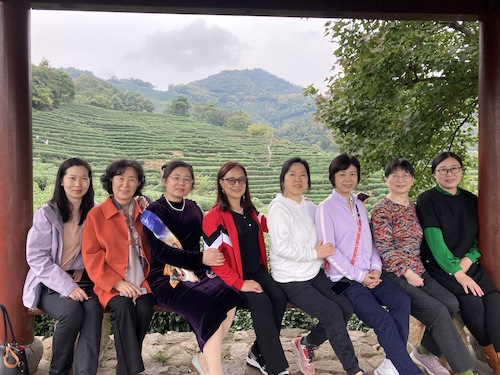 “霜降碧天静,秋事促西风。”女教授联谊会早早便开启了踏秋学习之旅,抵达龙井村,漫步十里琅珰,蜿蜒的峰峦俊秀、漫山的茶树叠翠。在欣赏美景之余,生科院吴玉环教授还结合自身的专业背景,化身行走的植物图鉴专家,向大家科普了途经之处的植物名称及特性,在场的女教授们也更深刻地理解了“绿水青山就是金山银山”的理念内涵。