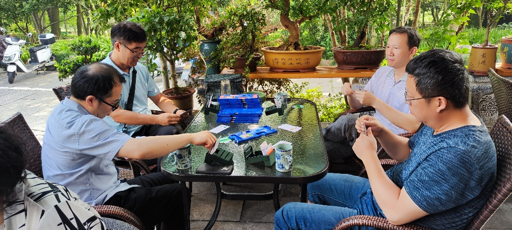 同日,俱乐部在每月第三周周三固定日活动基础上,还组织了上半年校外联谊活动,20多位老师参加本次活动。大家继续熟悉训练“掼蛋“技巧,以牌会友,乐在“棋”中,欢声笑语,氛围融洽。