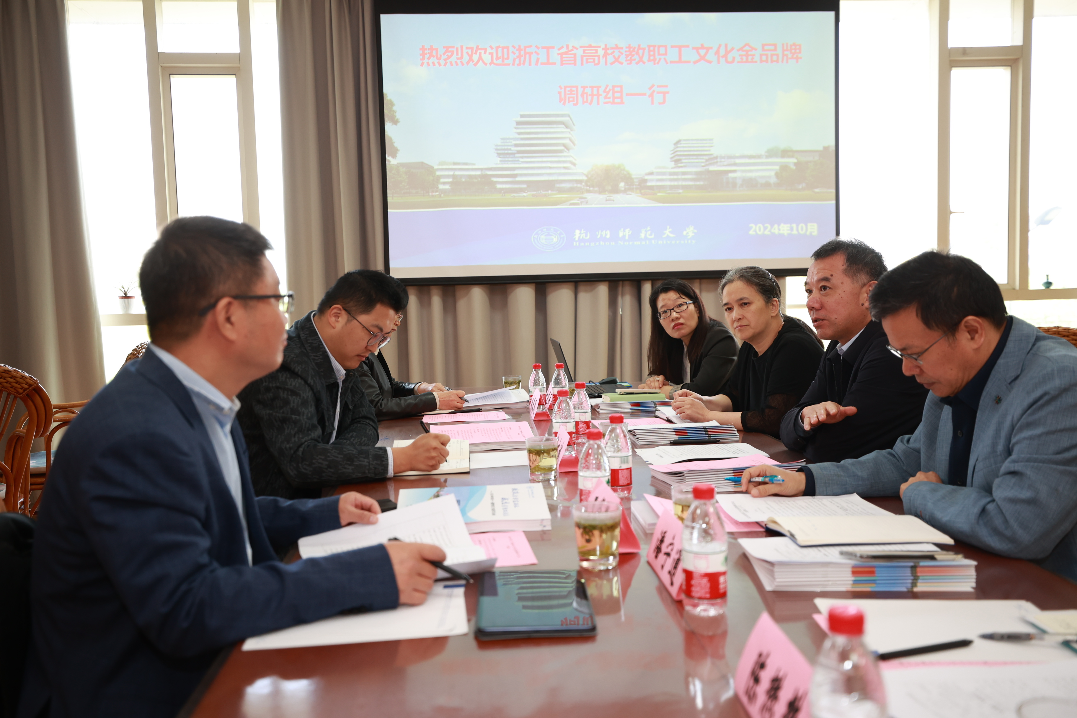 10月24日上午,由省教育工会副主席祝文斌任组长,浙江海洋大学工会常务副主席王贤恩、浙江科技大学工会常务副主席朱春凤、省教育工会周啁为成员的浙江省高校教职工文化金品牌调研组一行莅临我校实地调研考察我校教职工文化金品牌建设工作。校党委副书记、校工会主席杨政出席调研会,校工会常务副主席潘宁通、副主席陈海瑛,校工会青工委、教工摄影协会、校工会办公室等相关人员参加了会议。