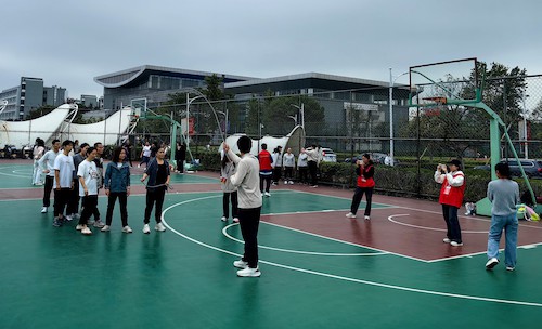 跳绳是校运会具有观赏性和互动性的集体项目之一。本次运动会上,机关代表队共10位老师组团参加跳绳。赛前,机关队的跳绳队员和摇绳队员进行了训练,为了在规定时间内增加跳绳的数量,老队员和新队员不断交流,大家从速度、节奏、落点多个方面进行反复练习,多次调整进入时机、路径和排列位置,做到“进绳准、出绳快、人接人、不空绳”,同时,摇绳和跳绳队员之间的配合默契,也为整体稳定发挥奠定良好基础。在2分钟的正式比赛中,大家表现十分默契,同心协力,相互配合,在活泼、紧张的节奏下,大家同步伐、共频率,最终取得了好成绩,发扬了机关队昂扬奋进、齐心协力的优良作风。