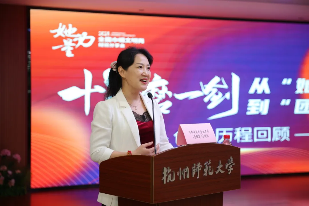 2025年4月17日下午,“她·力量”全国巾帼文明岗经验分享会在杭州师范大学仓前校区师生活动中心隆重举行。本次活动由校工会(妇联)主办,校党委副书记、校工会主席杨政,外国语学院院长、全国巾帼文明岗现岗长周敏,原岗长金向华、王倩等领导嘉宾出席,与各级"巾帼文明岗"代表、师生代表共同见证这一重要时刻。