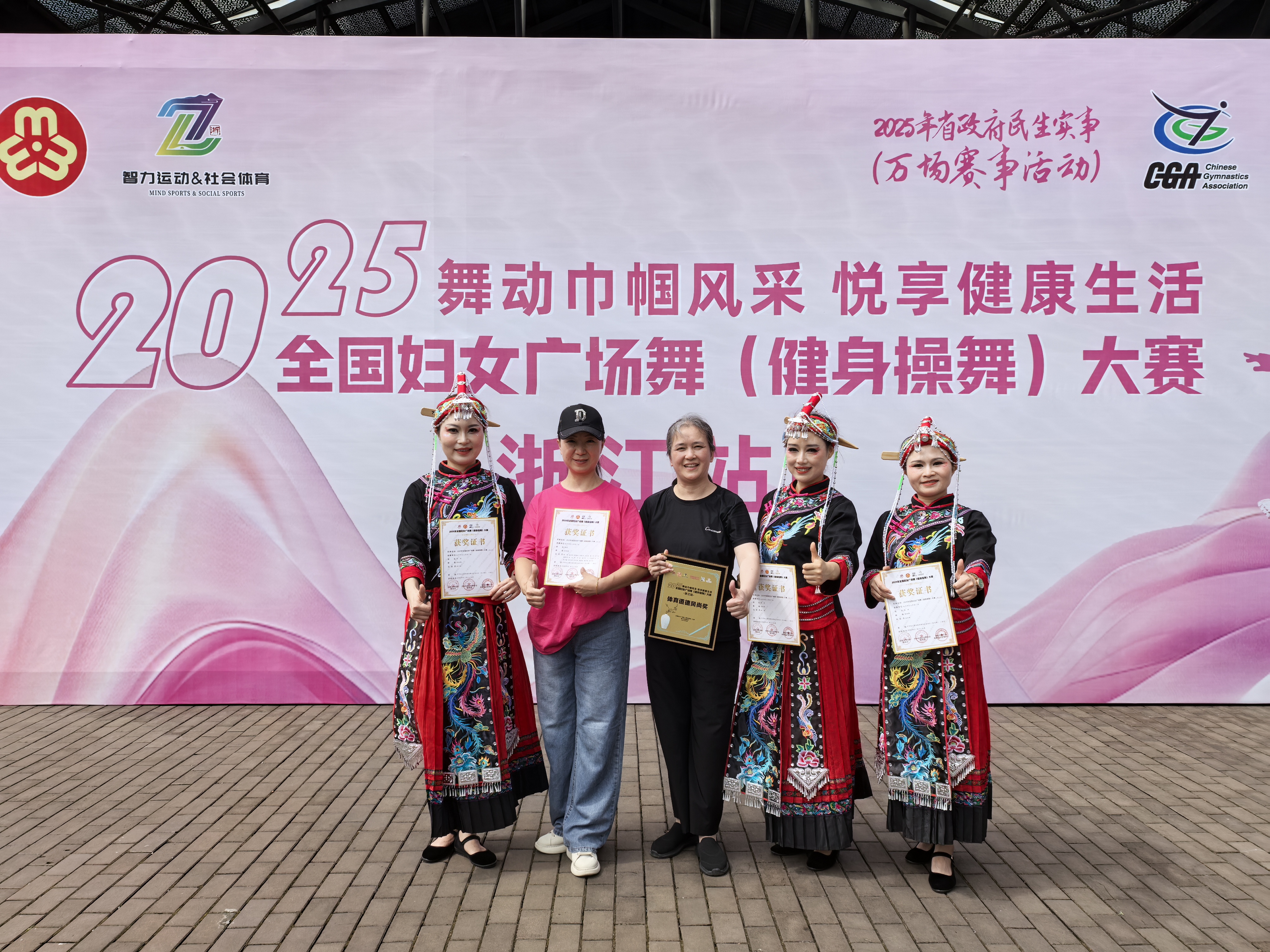 9月21日,“舞动巾帼风采 悦享健康生活”2025全国妇女广场舞(健身操舞)大赛(浙江站),在龙泉市望瓯・陶溪川文创街区隆重举行。我校推广站斩获中年组大集体健身舞类自选项目(民间舞)一等奖、中年组大集体规定项目三等奖、中年组大集体团体第四名、体育道德风尚奖等荣誉。