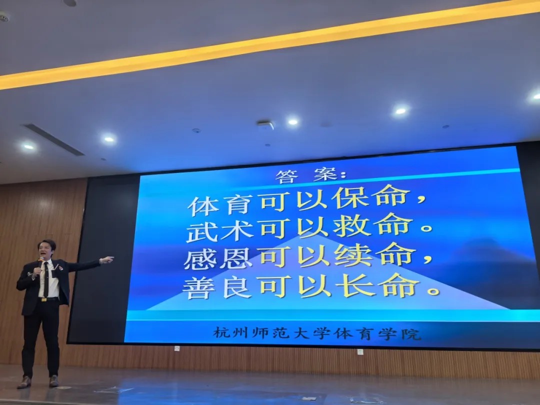 作为行业内的佼佼者与品德高尚的榜样人物,王勇老师履历亮眼:他曾担任韩国散打国家队教练,身兼竞技跆拳道国际级裁判、品势跆拳道国际级裁判、泰拳国际级教练等多重专业身份,同时也是散打国家一级运动员、跆拳道国家一级运动员及校跆拳道队教练。更值得敬佩的是,他凭借危难时刻挺身而出的勇气与担当,荣获中国见义勇为勇士、中华见义勇为英雄、浙江好人、最美杭州人、道德模范等多项荣誉,还曾担任杭州亚运会第 118 棒火炬手,获评杭州亚运会先进工作者、杭州市优秀共产党员,享受劳模待遇。此次,他以《雪域高原,生死营救》为题,为在场师生带来了一场兼具震撼与感动的精神盛宴。
