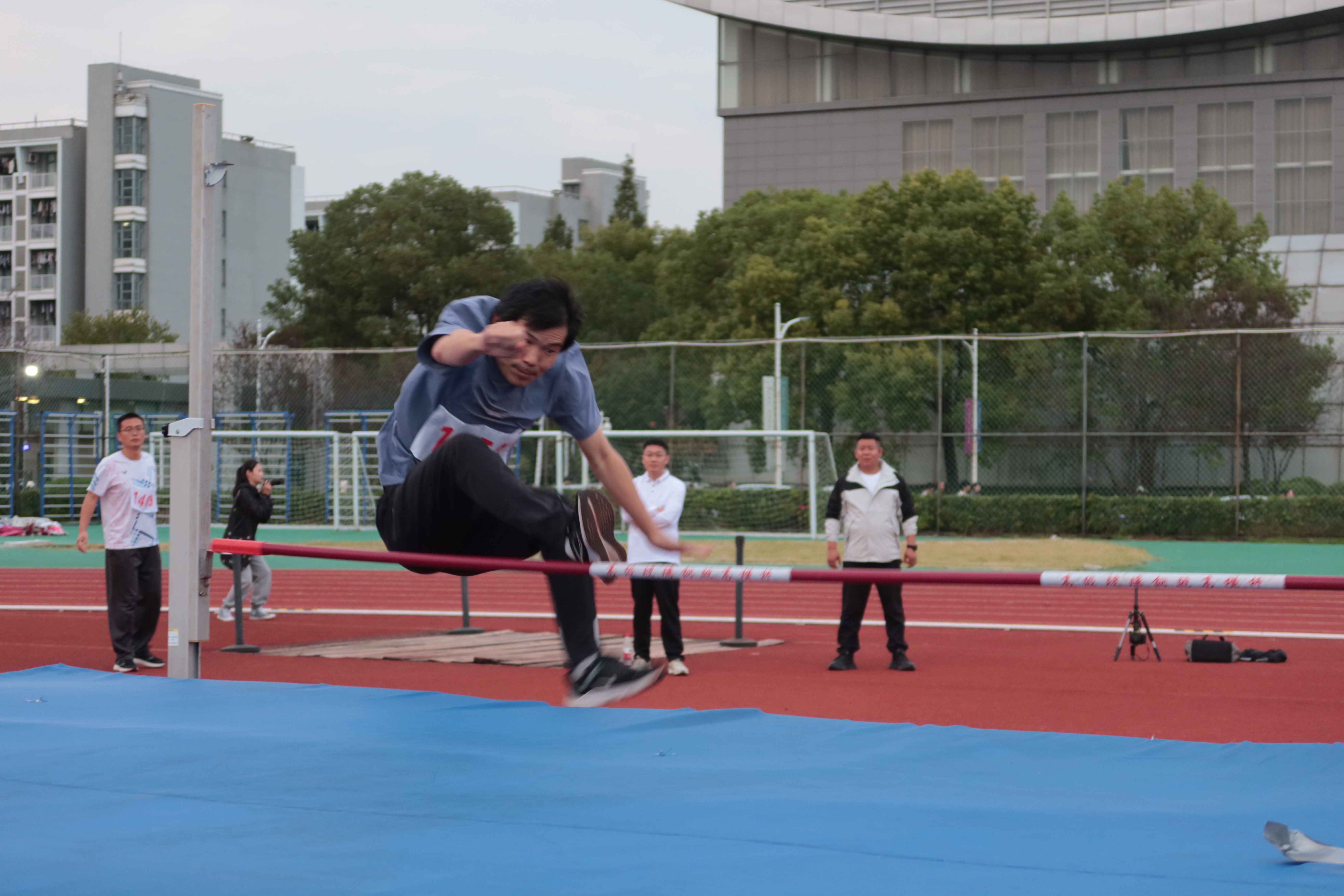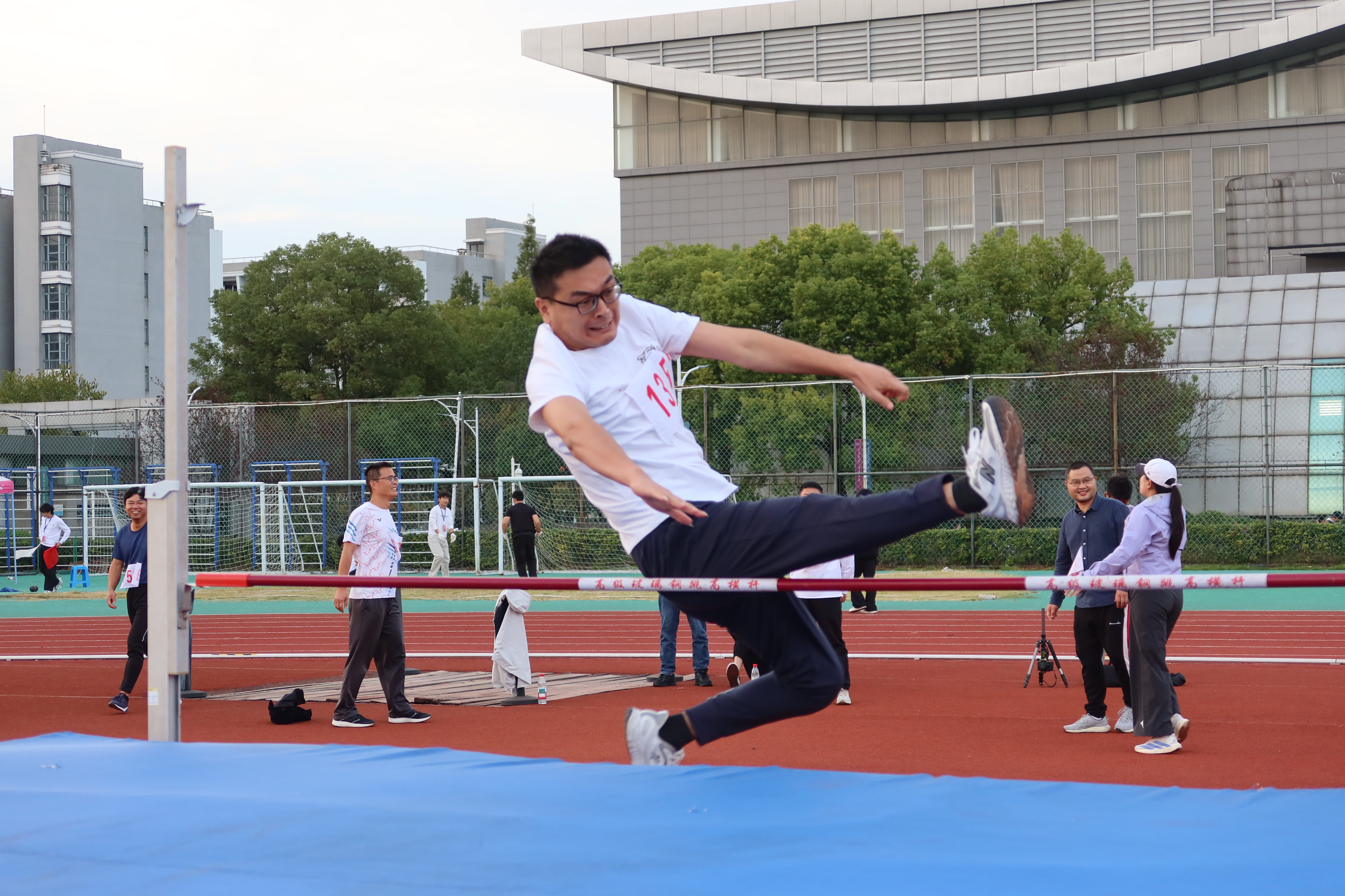 10月29日下午,经亨颐教育学院的吴海波和孙伟成老师参与了1组男子跳高比赛。他们虽然没有获得奖项,但他们的参与精神和努力态度赢得了师生的尊敬。两位老师在赛场上的每一次飞跃都是对自我挑战的体现,展现了学院教师积极向上的风貌。
