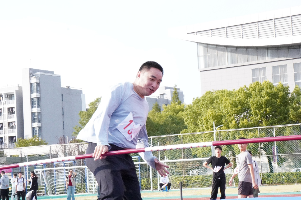 十月二十九日下午三点整,人文学院任虎老师代表学院参加校运会教工组男子跳高比赛。为迎战本次比赛,任虎老师在赛前进行了系统训练。他不断调整助跑节奏与过杆姿态,力求以最佳状态迎接挑战。秋阳和煦,赛场气氛热烈。随着裁判挥旗,任虎老师稳步助跑、奋力起跳,身影在空中划出流畅弧线。整场比赛不仅是技巧的较量,更是意志的展现。任虎老师不断挑战自我的毅力、沉着从容的表现,生动诠释了人文教师勇于突破、坚韧不拔的精神风貌。
