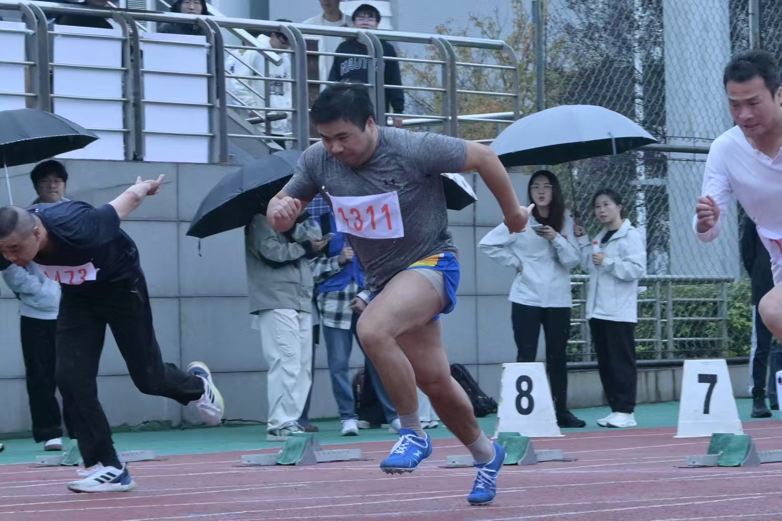 十月三十日上午十点四十分,发令枪声穿破细雨,傅培恩老师如离弦之箭般弹射而出,迈出的每一步都沉稳而迅猛,完美地将速度与激情展示在跑道之上。相机的快门键,目睹了傅老师全力冲刺的画面。片刻寂静后,赛场上爆发了雷鸣般的掌声,同学们的欢呼声此起彼伏,恭喜傅老师获得男子二组亚军!这百米冲刺,不仅是速度的比拼,更是教工们“坚持不懈、超越自我”精神的生动写照!