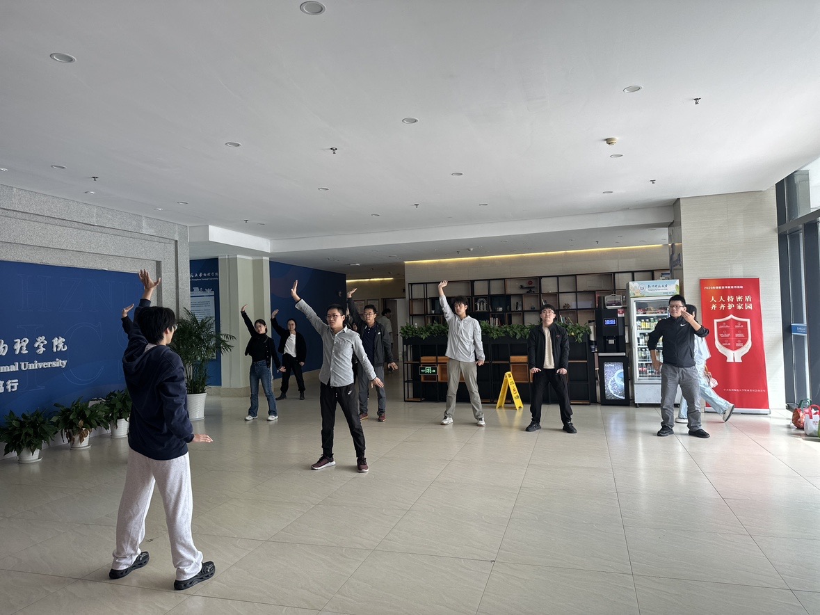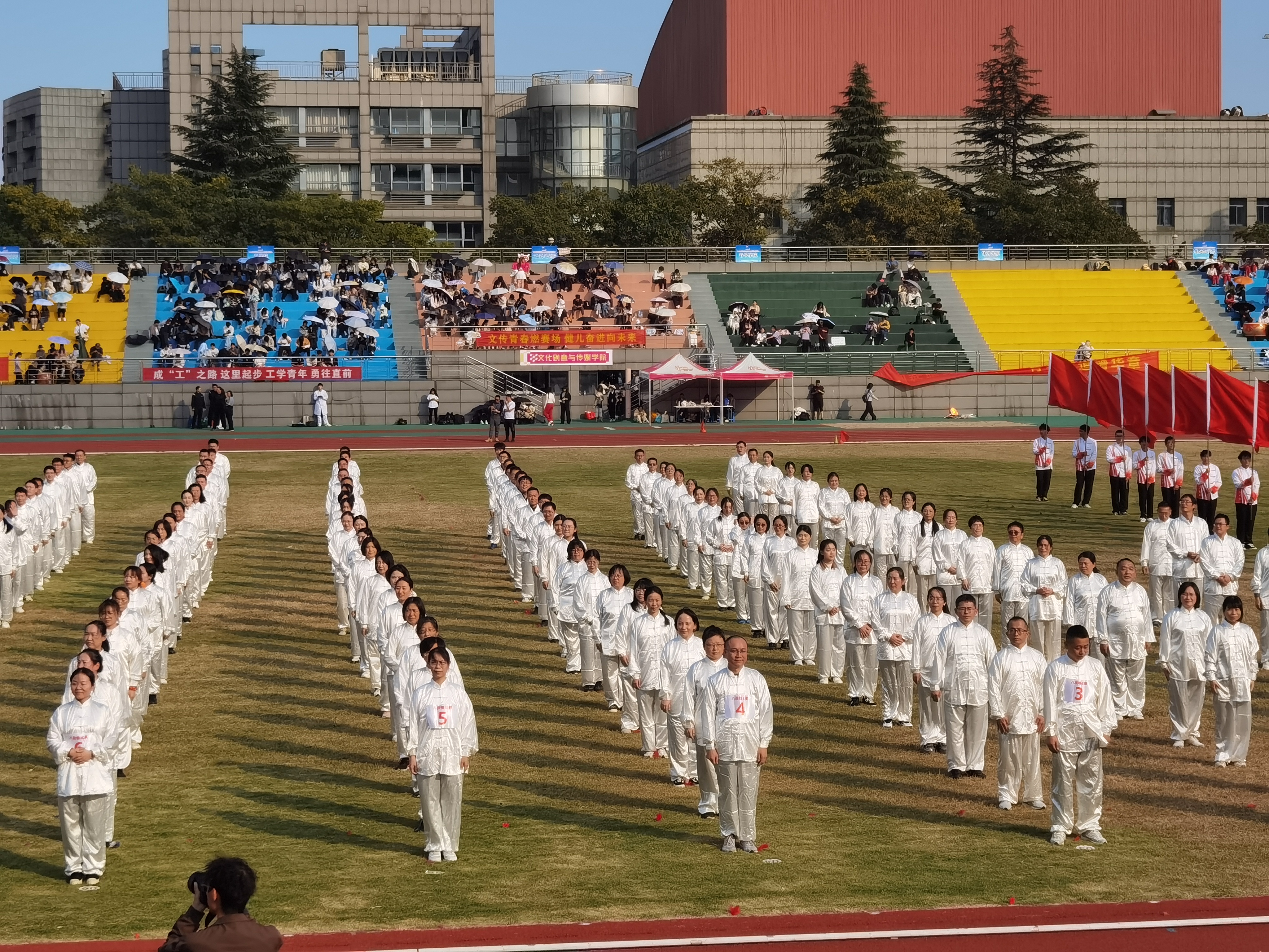 10月29日,杭师大第46届运动会现场热闹非凡,物理学院工会教工投身八段锦表演。