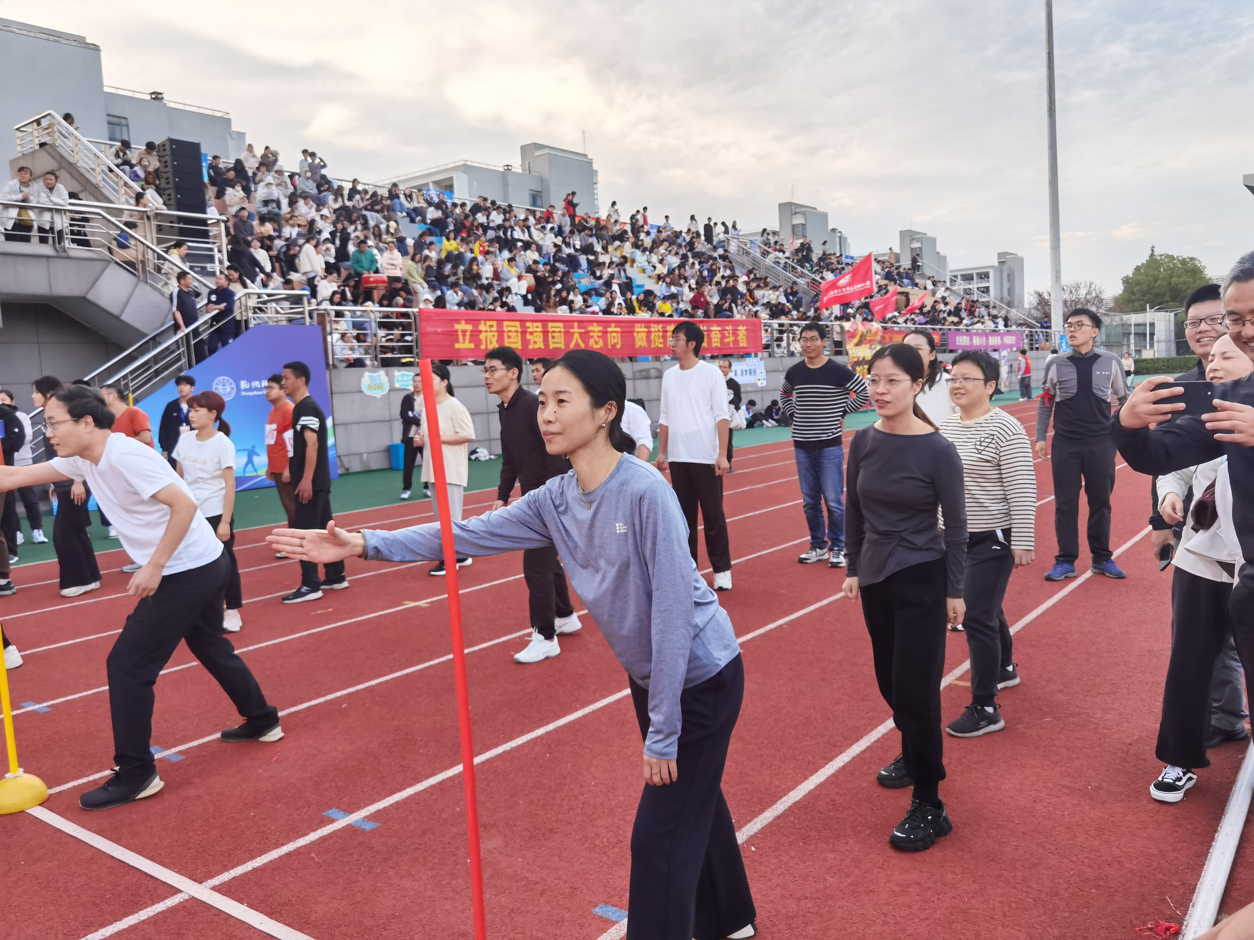 10月29日,杭师大第46届运动会赛场上激情似火,物理学院工会踊跃参与10*50米接力跑。