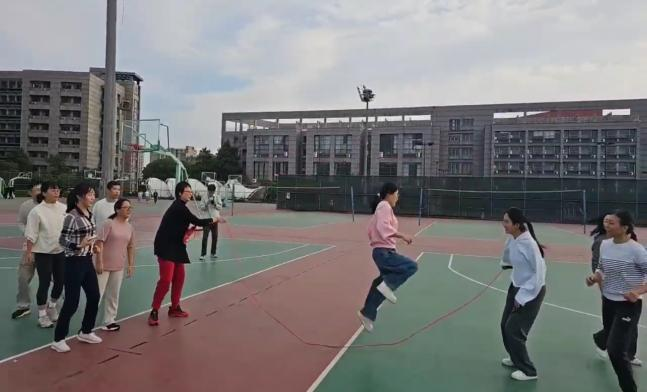 八字跳绳赛场上,气氛既紧张又活泼!马克思主义学院教师们心往一处想,劲往一处使。从赛前热身,到一起“琢磨”甩绳节奏与跳跃次序,每个人都全情投入。新手老手并肩作战,“加油!”声此起彼伏,这正是马院的“团队关怀”!学院领导与同事们也在旁呐喊助威。这根飞舞的大绳,正跳动着我院教师“凝心聚力、奋发有为”的昂扬精神!