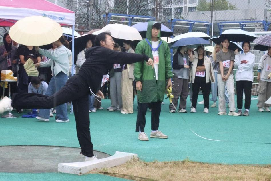 在繁忙操场上的一隅,在淅沥的雨声里,举行着一场力与技巧的考验——铅球比赛,选手们手持沉甸甸的铅球,屏息凝神,蓄势待发。举起,掷出,且看铅球在空中划过的优美弧线,无不是汗水与拼搏的最好见证;且听人群中的欢呼爆鸣,无不诉说着对运动员的赞誉与崇敬。每一次投掷都凝聚着拼搏与希望,每一次落地都诠释着拼搏的要义。我院的胡彦岂同学在此次的铅球比赛中荣获第七的优异成绩,他将铅球投掷出去的瞬间,是力与美的交响,奏响青春的华章。