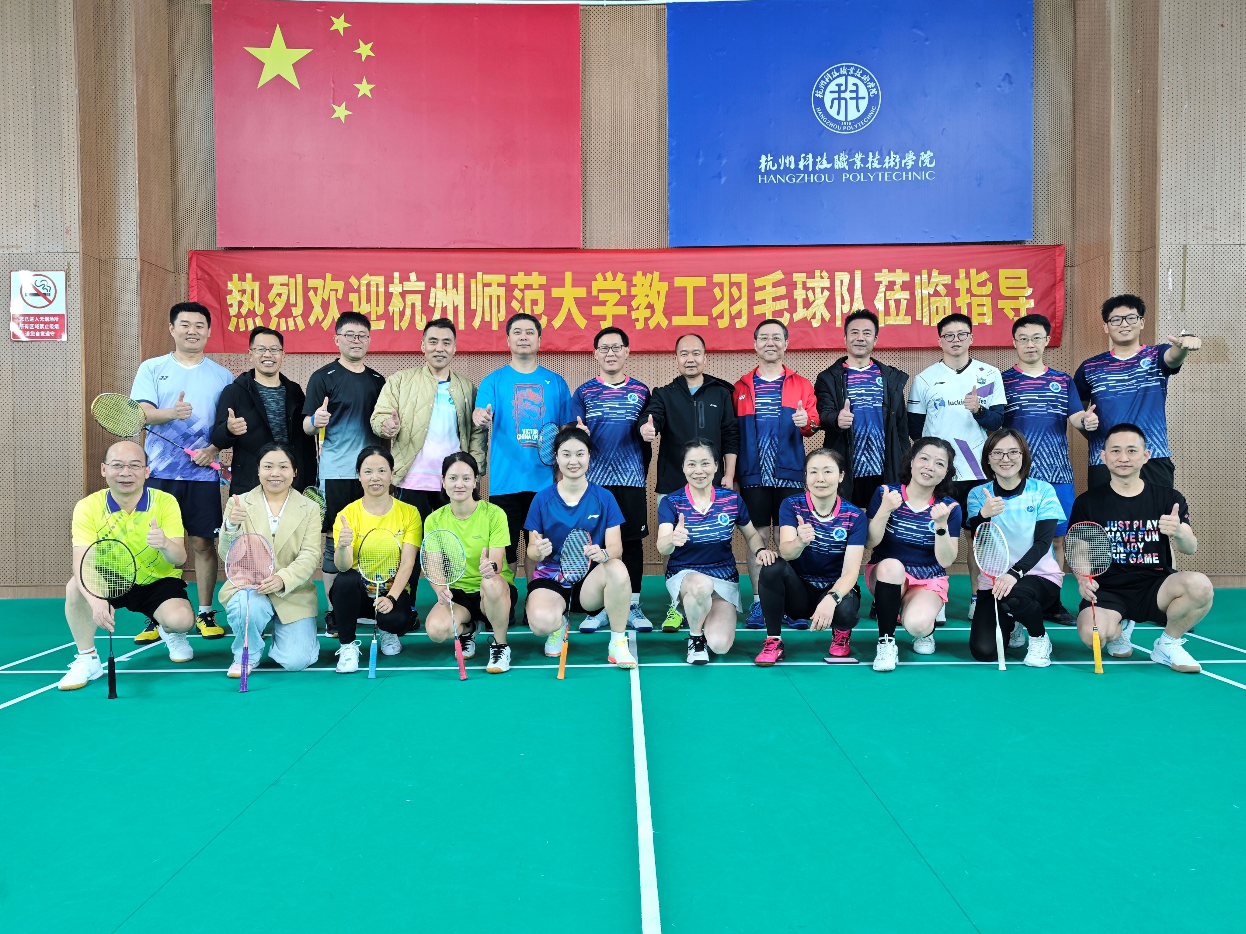 11月19日下午5点至晚8点,杭州师范大学教职工羽毛球俱乐部受邀赴杭州科技职业技术学院羽毛球馆,开展了一场别开生面的羽毛球交流活动。我校校友、杭州科技职业技术学院温正鲍校长和杭州科技职业技术学院程利群副校长亲自到场参与,与两校教职工运动员共叙情谊、同场竞技,为活动增添了浓厚的交流氛围。