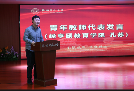经亨颐教育学院孔苏老师作为第十三批青年教师代表发言,分享了与导师蒋一之三年结对的成长点滴。女教授联谊会副会长周春儿教授(信息科学与技术学院)代表导师发言,阐释“青蓝”深意:“‘蓝’是希望,‘青出于蓝而胜于蓝’是双向奔赴的幸福”,为青年教师成长指明方向。活动现场,青年教师为导师献花,以鲜花寄深情,礼赞师恩。
