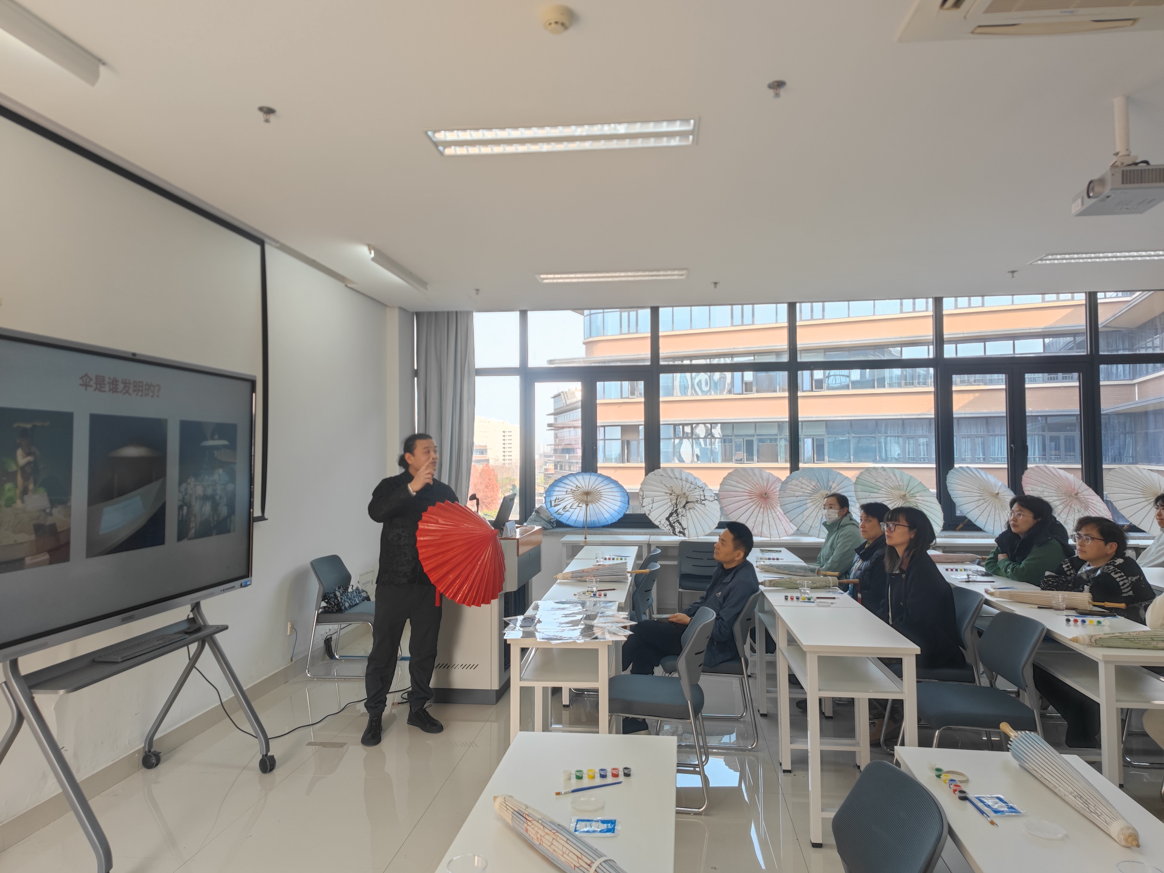 12月11日下午,公卫与护理学院工会与教工党支部联合举办“预见护韵·绘伞映心”主题伞面绘制活动,通过非遗技艺体验、AI微党课学习与创意实践,探索传统文化与党性教育的创新融合。活动特邀国家级非遗油纸伞制作技艺代表性传承人余万伦老师现场指导,学院共有40名教职工参加,共绘中华文化之美。