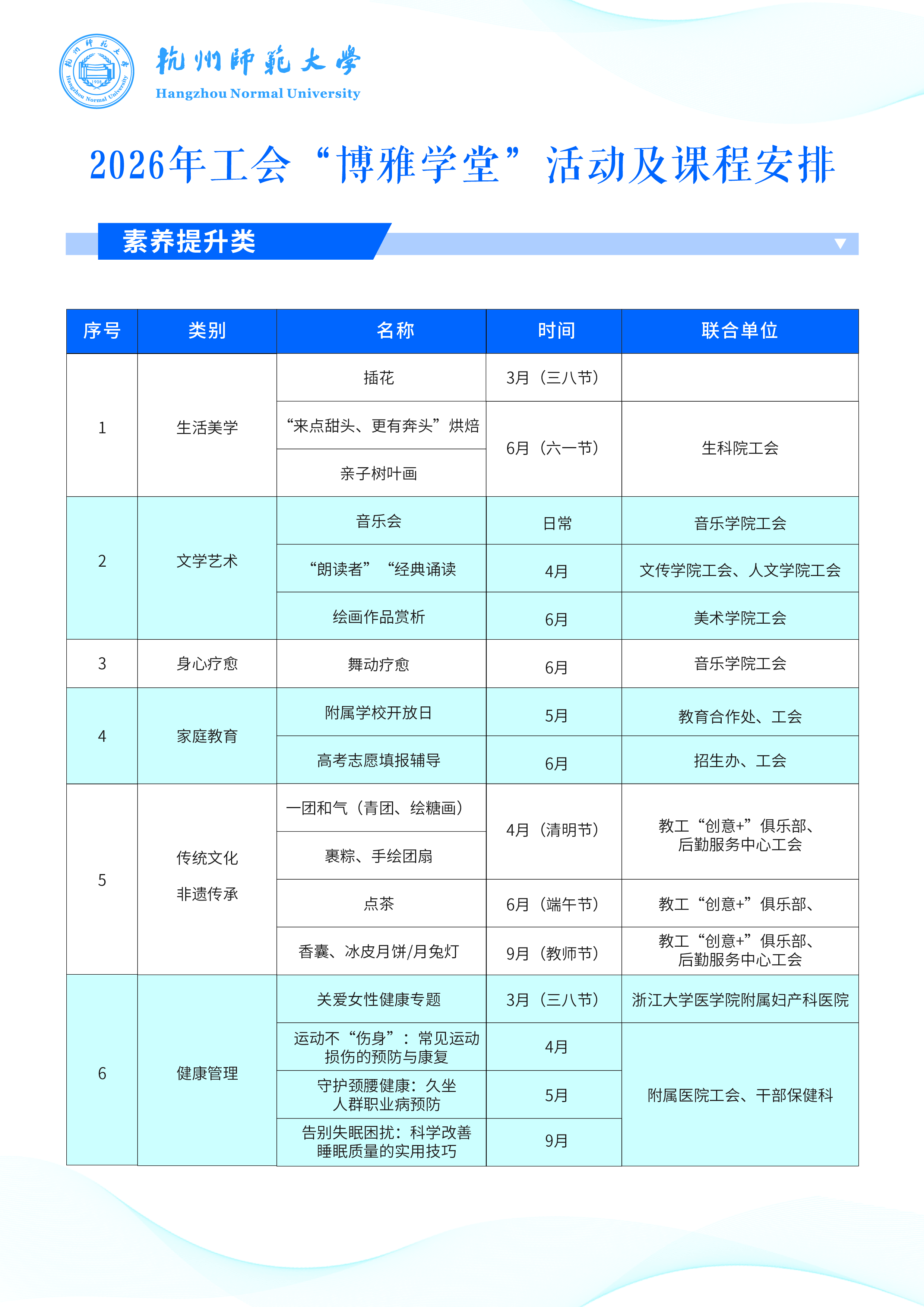 具体内容详见校工会网站、公众号海报及后续通知,活动前开放系统报名。