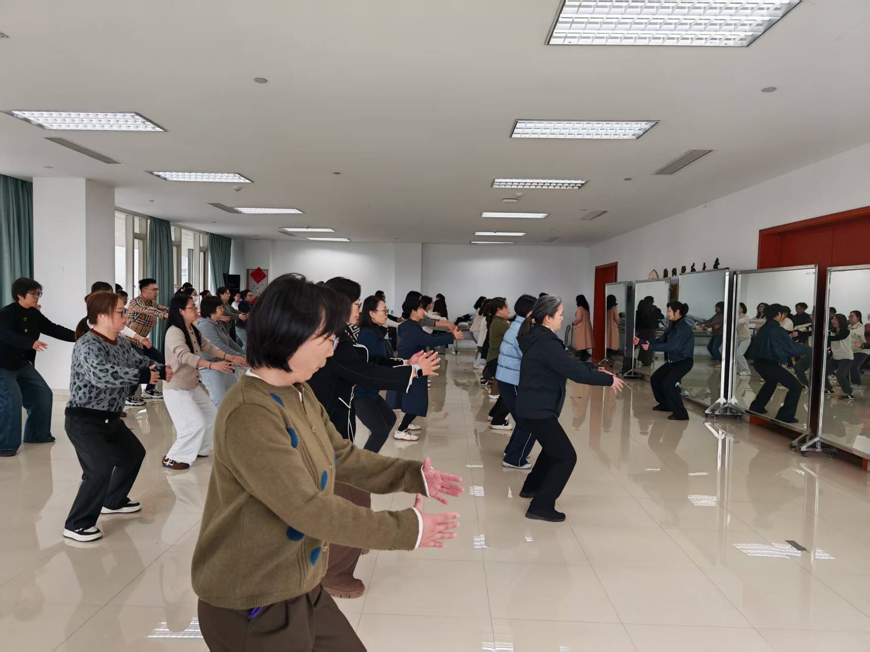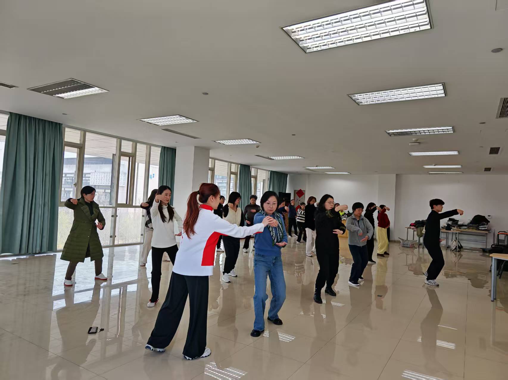 尽管是开课首日,师生活动中心310室内却早已人气爆棚。不仅有慕名而来、首次体验太极魅力的新老师,更有许多协会的老会员风雨无阻地准时赴约。大家身着宽松舒适的服饰和运动鞋,将教室站得满满当当,共同期待着一场身心洗礼的开始。